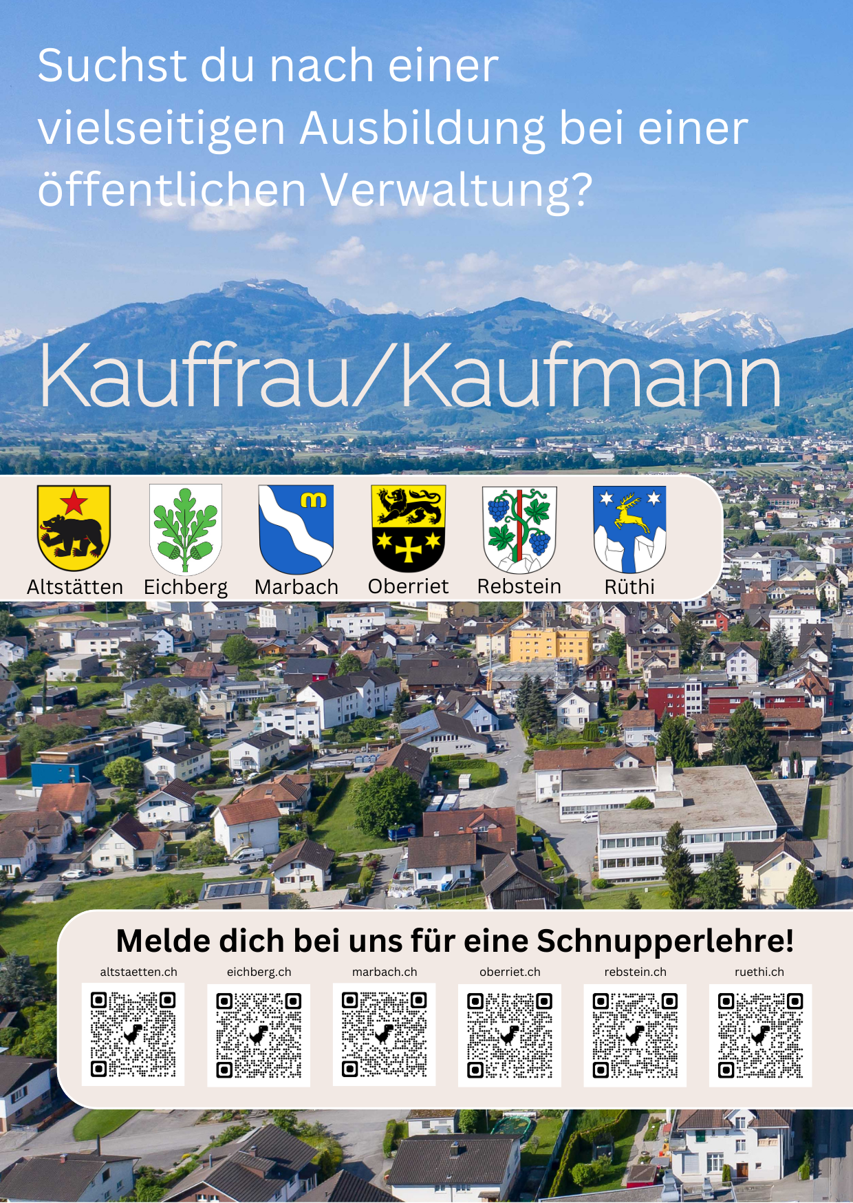 Bei der Gemeindeverwaltung Oberriet besteht die Möglichkeit, eine Schnupperlehre für den Beruf Kauffrau / Kaufmann zu absolvieren. Je nachdem, wie gross die Nachfrage ist, können nur Interessenten aus der Politischen Gemeinde Oberriet berücksichtigt werden.